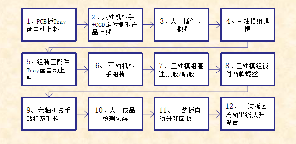 經(jīng)過多年的優(yōu)化和完善。 把3C行業(yè)常用的點(diǎn)膠,焊接,鎖螺絲,貼標(biāo)簽,掃碼,測(cè)試,塑膠袋包裝,紙箱包裝,托盤供料等工序制作為標(biāo)準(zhǔn)工站。