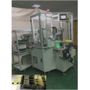 光纖連接器3個(gè)部品全部自動(dòng)供料、人工擺放6條光纜之后,自動(dòng)完成穿線作業(yè),